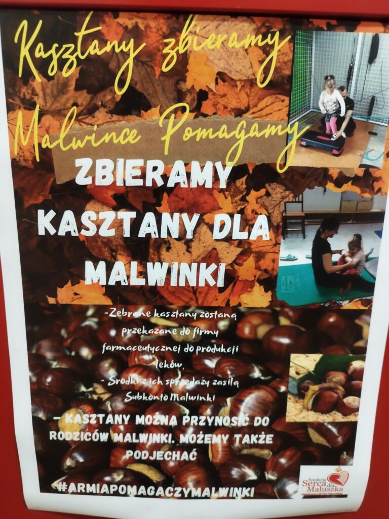 Mieszkańcy Internatu wraz z wychowawcami włączyli się czynnie, w akcję zbierania kasztanów, która była zorganizowana przez Przedszkole Miejskie nr 32. Zbiory były bardzo owocne, gdyż w okolicy internatu i szkoły CKZiU „MEDYK” rośnie kilka pięknych i dorodnych kasztanowców. Dziękujemy za pomoc.
